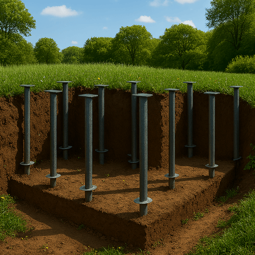 Свайно-винтовой фундамент — это проверенное решение для небольших и просторных объектов, особенно при сложных грунтах и высоком уровне грунтовых вод. Мы предлагаем строительство свайного фундамента под ключ с соблюдением всех технологических требований и СНиП.