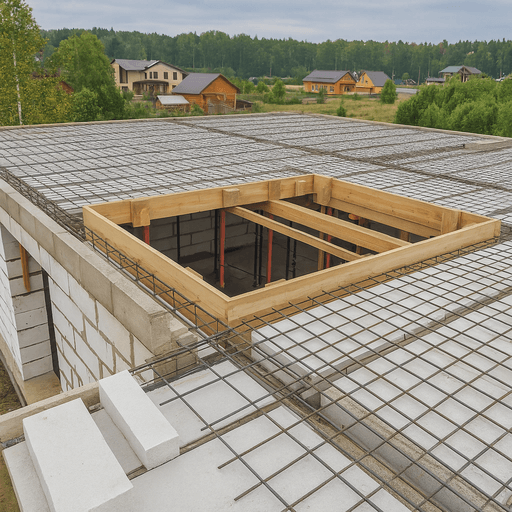 - Монтаж сборных плит или балочной системы (для сборных решений).